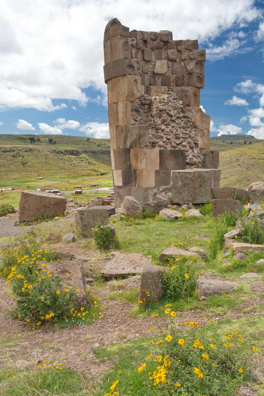 30 Km von Puno befinden sich die Grabtürme von Sillustani. In wunderschöner Landschaft herrlich gelegen über den glitzernden Wassern des Umayo Sees, stehen 9 Chulpas – so werden die Begräbnistürme in Aymara genannt – von den Collas und weiter 26 von den Inkas. Die Steine sorgfältig bearbeitet, erbaut um ca. 1200 nach Christus. Diese Halbinsel war für die Kultur der Collas heilig und sie begruben in diesen Türmen die Leichen bedeutender Männer. Dazu wurden zur Beerdigung Lamas verbrannt, Frauen, Kinder und Diener getötet, damit sie ihren Herren im Tode zu Diensten sein konnten. Einige dieser Personen wurden lebend mit dem Toten eingemauert. In einem kleinen Museum hinter dem Parkplatz kann man einige Mumien und Fundstücke besichtigen.