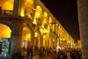 Die Plaza ist an 3 Seiten von schönen, 2 stöckigen Säulengängen eingerahmt, ist grün bepflanzt und zahlreiche Bänke laden zum Verweilen ein. An der südlichen Ecke präsentiert sich die Iglesia La Compania de Jesus, ebenfalls mit schönem Innenleben und einem herausragenden Portal. Die Fertigstellung dieser aufwendigen Kirche dauerte 100 Jahre und hat bisher alle Erdbeben unbeschadet überstanden. Gleich daneben befindet sich der Eingang zur Claustro Jesuita, dem zur Kirche gehörenden ehemaligen Kloster. Dessen renovierter Kreuzgang aus Sillar sehenswert ist.