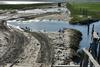 Der Wasserstand der Lagunen ist sehr hoch, und das Wasser steht in die Piste, die teilweise sehr lehmig und weich ist. Der ganze Untergrund ist durchnässt. 8 Km die Piste runter, kurz vor der 2. Brücke wollte ich ein S fahren, zwischen 2 Wasserflächen wieder in die Mitte, die besser erschien.