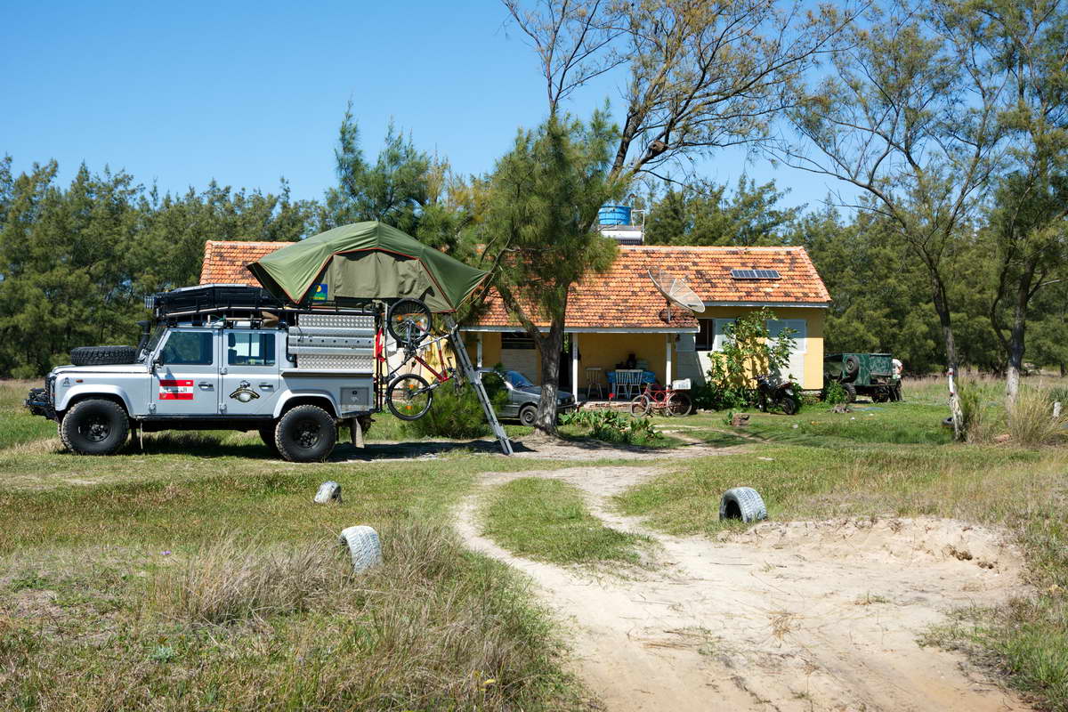 Es hält gerade ein Freund von ihm und sie sagen ich soll ihnen folgen. Sie wissen einen sicheren Platz für mich. Ok, Sie voraus, ich hintennach. 2 Km weiter den Strand runter ist eine Einfahrt zu einem Grundstück. Dort lebt der Freund des Fischers mit seiner Familie. Er heißt Elizeu. Sie betreiben Holzwirtschaft und das Grundstück erstreckt sich 6 Km entlang der Küste und 5 Km ins Landesinnere.