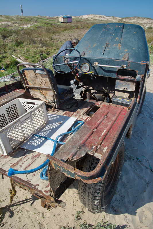 Auf dem Heimweg besuchen wir dann noch seinen Bruder, der baut gerade ein Haus und seinen Fischerfreund mit seinem alten salzzerfressenem Willis-Jeep. So geht auch dieser Tag zu Ende und die Nacht war wieder sehr stürmisch.