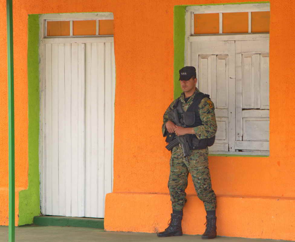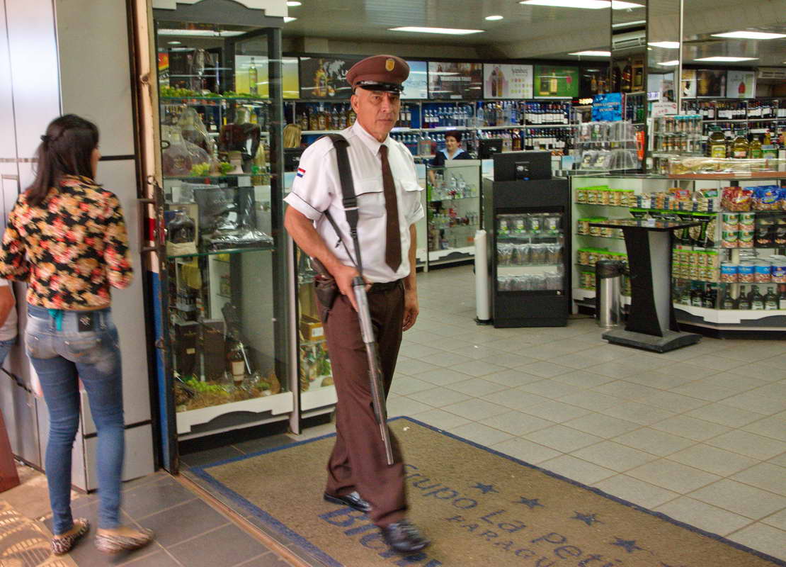 Einmal kommt auch die Polizei zu besuch, im Gegensatz zu Asuncion sind die hier freundlich und nett. Sind eigentlich arme Schlucker, Sie müssen zum Mindestlohn arbeiten, sich die Ausrüstung und Waffen selber kaufen.