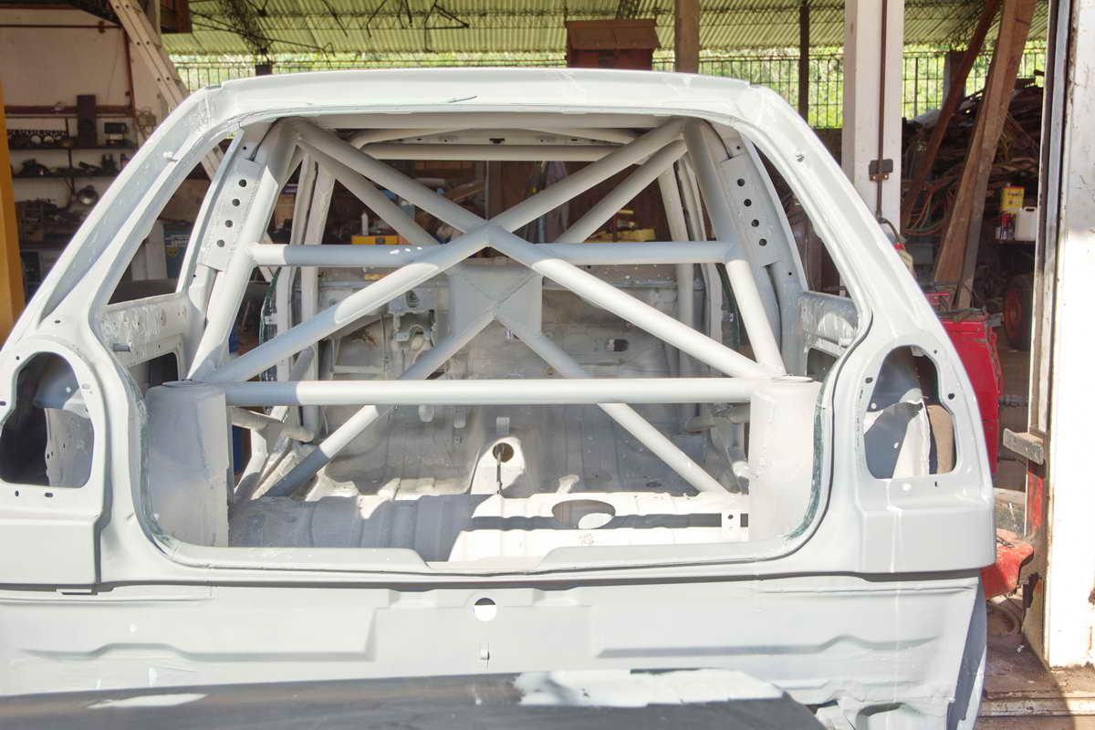 Reparatur von gebrochenem Dach an der A-Säule, zusätzliche Abstützung gebaut.
