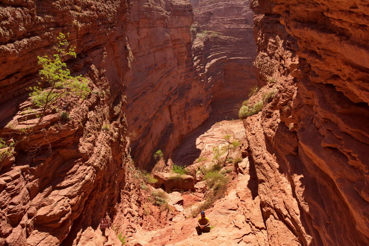 Wir hatten das perfekte Timing zum Aufbruch, da die große Ruhe im Camping sowieso vorbei war. Ich wollte Kurti erst noch einen kleinen Eindruck von den nordargentinischen Bergen verschaffen, bevor wir gen Patagonien aufbrechen. Gemütlich folgten wir der Straße hinauf zur Quebrada de las Conchas, die mit großen, ausgewaschenen Canyons aus leuchtend rotem Sandstein durchsetzt ist. Der Tag war heiß und trocken, so löschten wir Abends unseren Durst in Cafayate mit einer großen Flasche Torrontes Wein. Hier im Norden des Landes wird vorwiegend Weißwein angebaut, in einer Höhenlage von 1800 bis 2300 m.