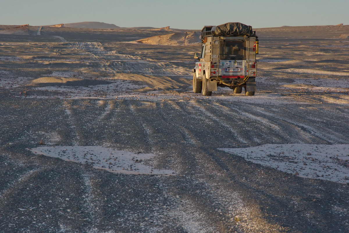Am folgenden Tag mussten wir früh raus, Christian hat mir geraten, die sehr weichsandige Strecke nach Fiambala so früh als möglich in Angriff zu nehmen, da der in der Nacht stark ausgekühlte Sand wesentlich fester und somit besser befahrbar ist, als wenn man am Nachmittag unter voller Sonneneinstrahlung auf die Piste geht. Laut ihm ist das Risiko im Weichsand stecken zu bleiben, bei frühem Aufbruch wesentlich geringer als später. An einigen Schlüsselstellen soll das Durchkommen im Weichsand nachmittags fast unmöglich sein. Dazu empfahl er, die linke (obere) Piste zu fahren, denn die rechte, die weiter unten im Dünen-Tal verläuft, ist meist dick mit Weichsand zugeweht.