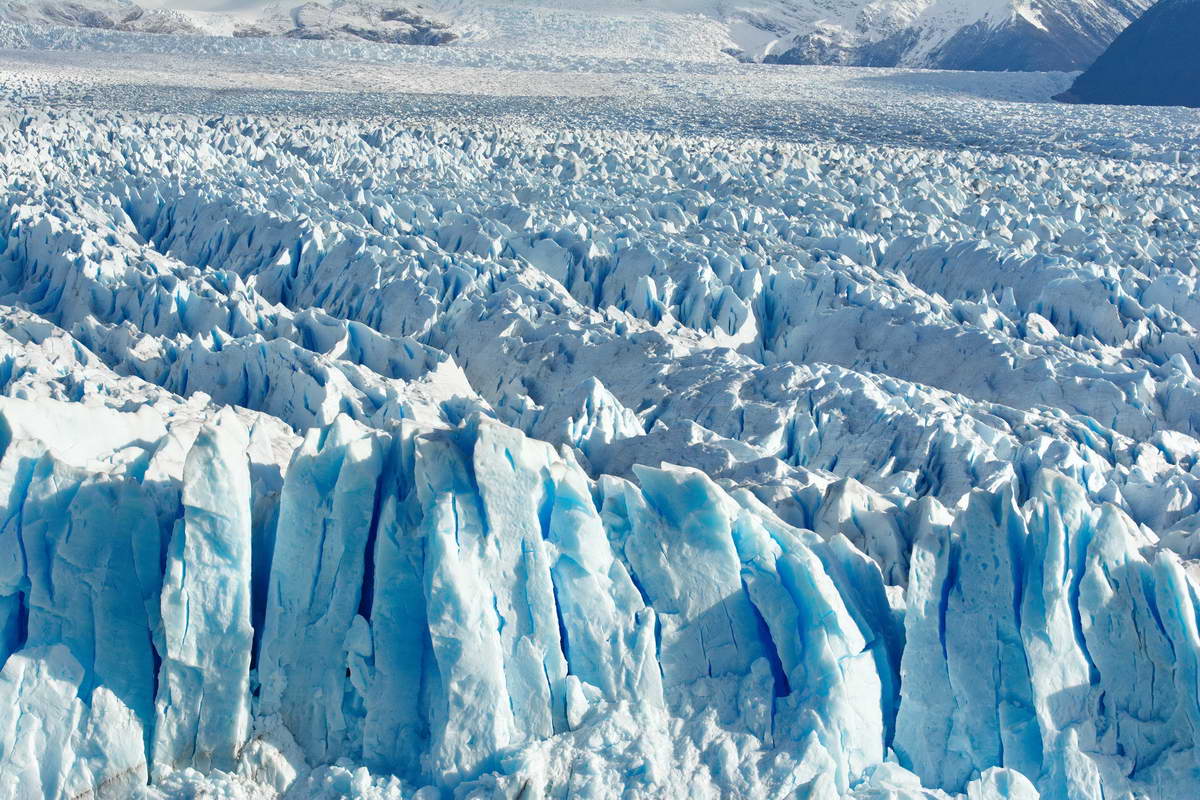 Ein bisschen Glück für ein Morgenfoto bot sich dennoch am ersten Aussichtspunkt, Der Gletscher selbst ließ den Ärger schnell wieder verrauchen, ruhig türmten sich die Eismassen vor meinen Augen auf, die Stille nur gelegentlich unterbrochen von dem lauten Knacken des sich bewegenden Gletscher. Bis halb 11 Uhr vormittag war außer mir keiner da, Unbeschreiblich. Auch hier zahlt sich die ruhige Zeit im Herbst aus. Für eine gewisse Zeit war das einfach „mein“ Gletscher. Das Licht war schön, am Nachmittag klarten die Berge im Hintergrund auf, Es ist nicht in Worte zu fassen.Noch ein paar Fakten: die Abbruchkante des Gletschers ist über 4 Kilometer lang, das Eis ragt zwischen 40 und 70 Meter aus dem Wasser, der Großteil liegt aber unter Wasser, bis zu 200 meter ist de See hier tief. Alle paar Jahre schlägt das Eis am gegenüberliegenden Ufer an und blockiert den See. Das Wasser auf der einen Seite steigt und irgendwann bricht das Eis. Tolles Schauspiel. Der Perito Moreno ist stabil und seine Länge bleibt ungefähr gleich. Trotz dieser gewaltigen Ausmaße und einer Fläche von über 250 km2 gehört er nicht zu den größten Gletschern des Patagonischen Eisfeldes.