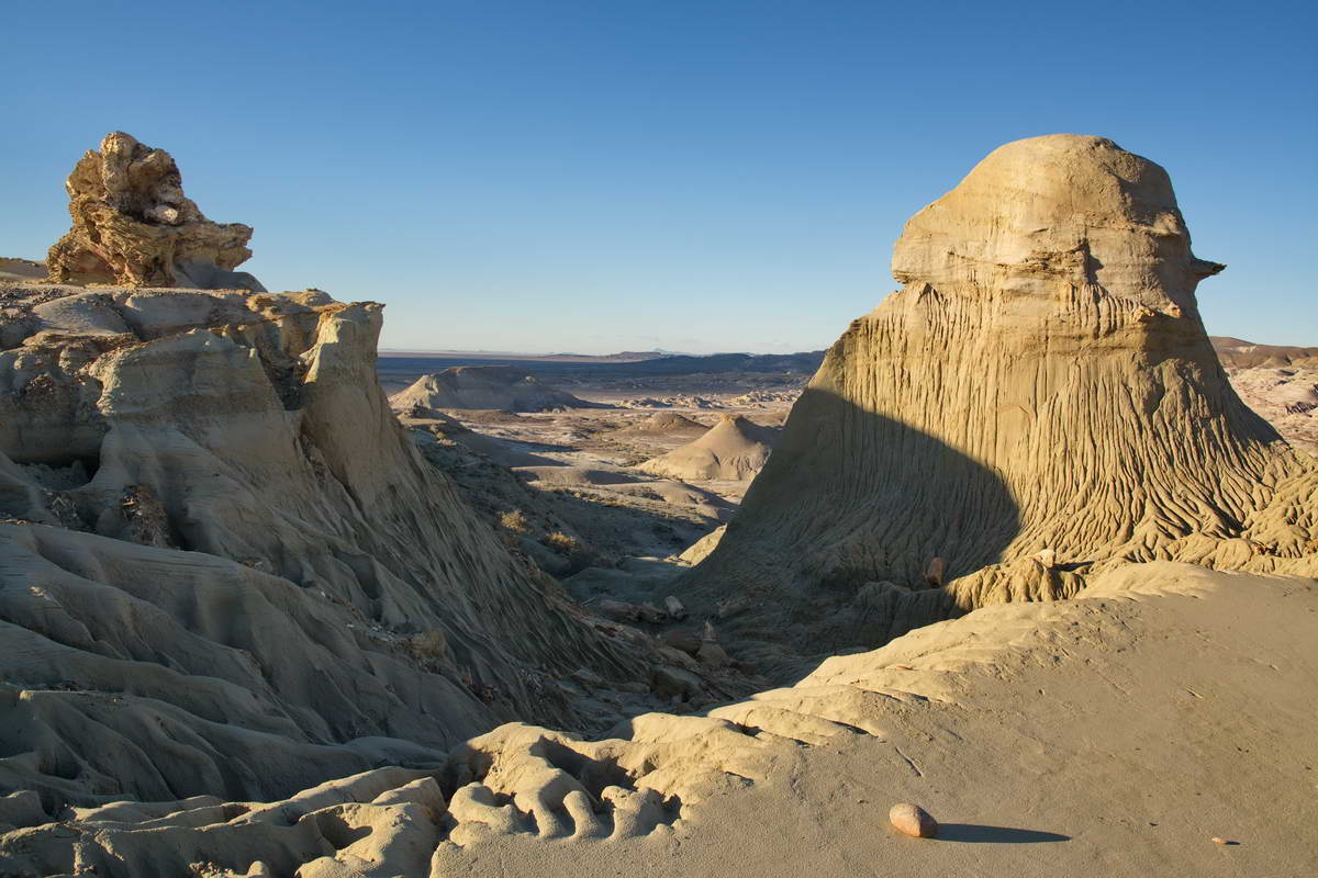 Nördlich von Sarmiento liegen 2 große Seen in flachen Hügeln eingebettet, wer die Seen entlang der Anden besucht hat, kann sich diese getrost sparen, aber südlich der Stadt wartet ein archäologisches Kleinod auf den Besuch, die Bosques petrificados, der versteinerte Wald. Ein erstaunlicher Anblick. Die versteinerten Baumstämme, 65 Millionen Jahre alt, liegen in der Wüste verstreut, teilweise so echt aussehend, das man sie einsammeln möchte und daraus ein Lagerfeuer entzünden. Es stürmt extrem über die weiten Flächen, abends zurück im Auto bin ich total ausgekühlt und freue mich auf den heißen Tafelspitz und die Rindssuppe mit Fritatten, die da auf mich warten um mich zu wärmen.