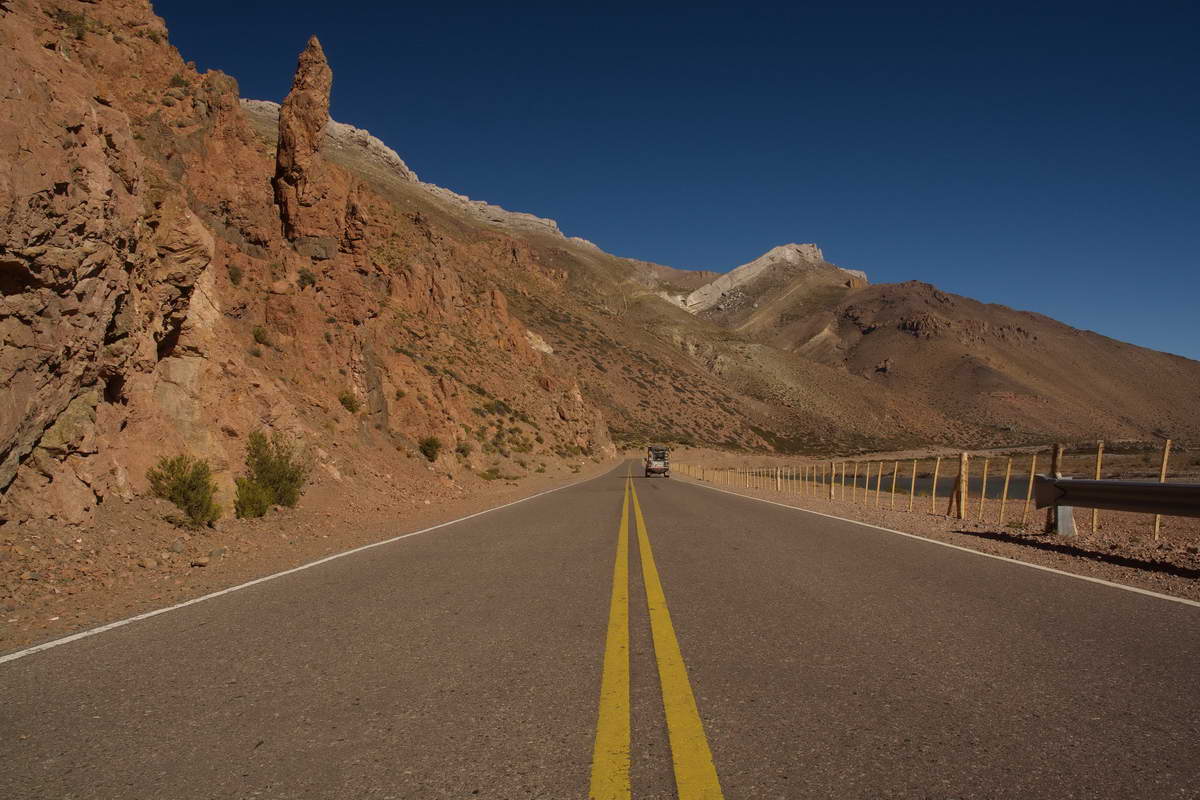 Dafür klarte es auf und ein traum Tag brach an. In Chos Malal erreichte ich den Mittelpunkt der Ruta 40 und kurz darauf die Provinzgrenze nach Mendoza. AB da wurde die Ruta 40 wirklich schlecht, der Asphalt verschwand und wechselte sich mit Wellblech und Schlaglöchern.