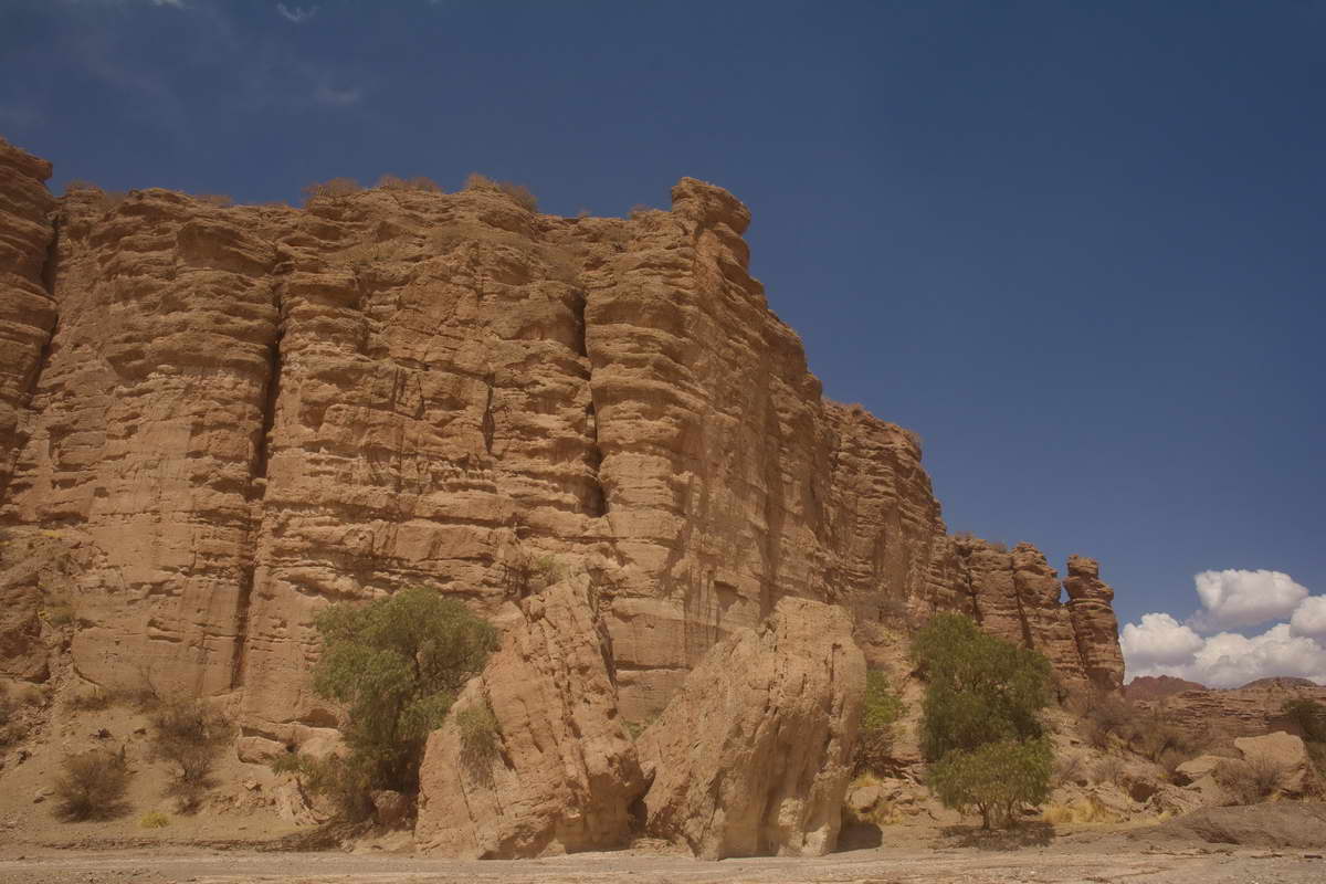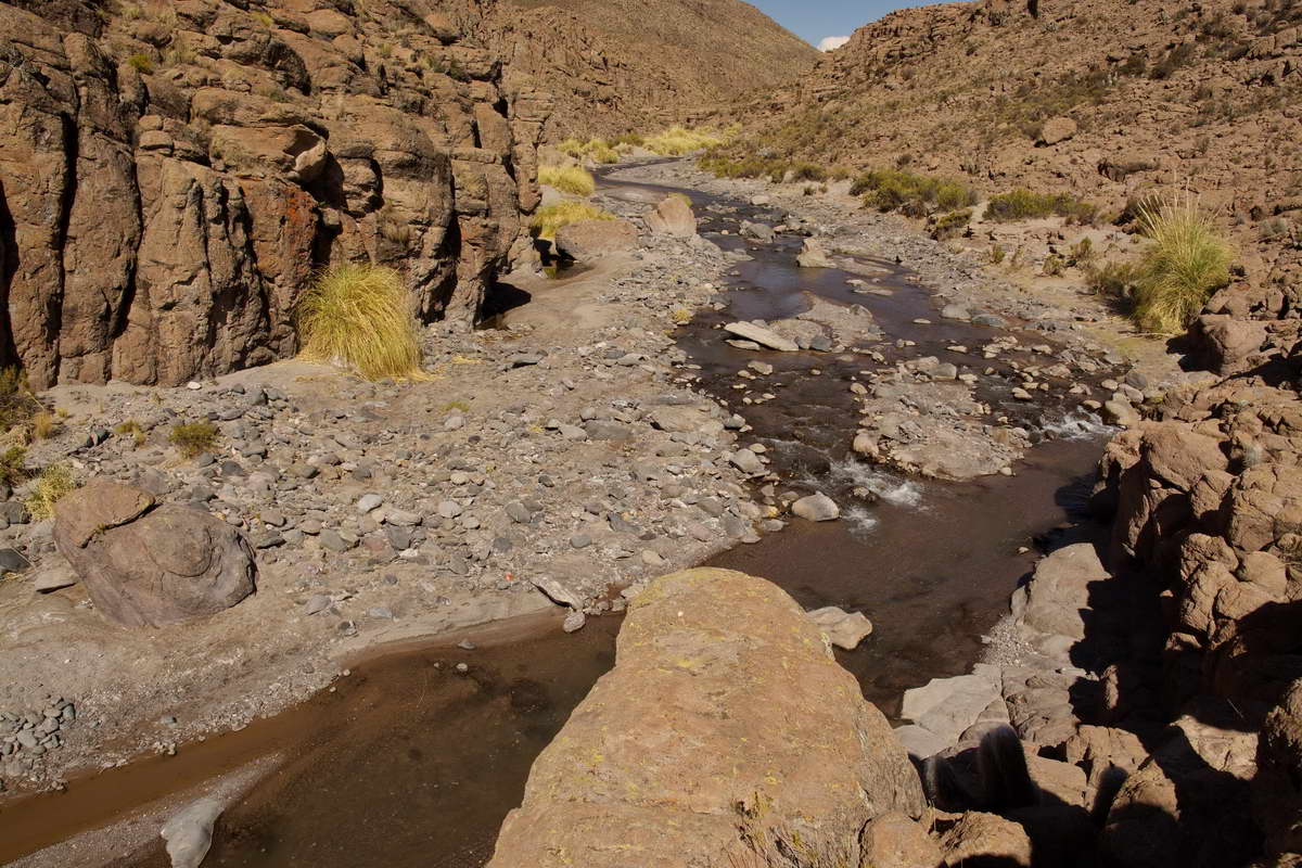 Vom Tal gibt’s mehrere Abzweiger in Schluchten und alte Wasserläufe, bei der Trockenheit hier kann man sich gar nicht vorstellen, das da auch heute noch regelmäßig Wasser durch die Schluchten stürzt. Das Wasser kommt von oben aus Bolivien herunter in der dortigen Regenzeit. Vor einigen Jahren gab es in den umliegenden Bergen starke Regenfälle, die Sturzfluten hatten mehrere Dörfer zerstört und viele Menschen getötet, die Menschen hatten keine Ahnung, was sich da oberhalb zusammenbraute. Deshalb ein Rat von mir, der nicht nur hier, sondern auch überall sonst Gültigkeit hat: