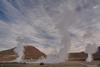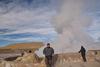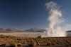 Um 4 Uhr früh musste ich auf der Matte stehen, das war auch ein Grund an der Tour teilzunehmen, um den Druck zu haben, aufzustehen. Bekanntlich bin ich normal ja kein großer Frühaufsteher. Pünktlich zum Sonnenaufgang hat uns der Fahrer an den Geysiren ausgeladen. Über 30 Meter hoch stiegen die Dampfsäulen in den Himmel, entstehend durch den großen Temperaturunterschied zwischen dem, auf 4300 m Höhe bei 82 Grad kochendem Wasser und der um 6 Uhr früh herrschenden Lufttemperatur von ca. minus 10 Grad. Tja, und das war’s dann auch schon. Wer irgendwo auf dieser Welt schon mal einen richtigen Geysir gesehen hat, bei dem das Wasser mit hohem Druck meterhoch aus den Löchern der Erdkruste pfeift, die Energie spürbar ist, der wird hier von dem bisschen Dampf enttäuscht sein, und jedem der schon mal einen Geysir wie zb. in Island gesehen hat, der kann das hier getrost auslassen.