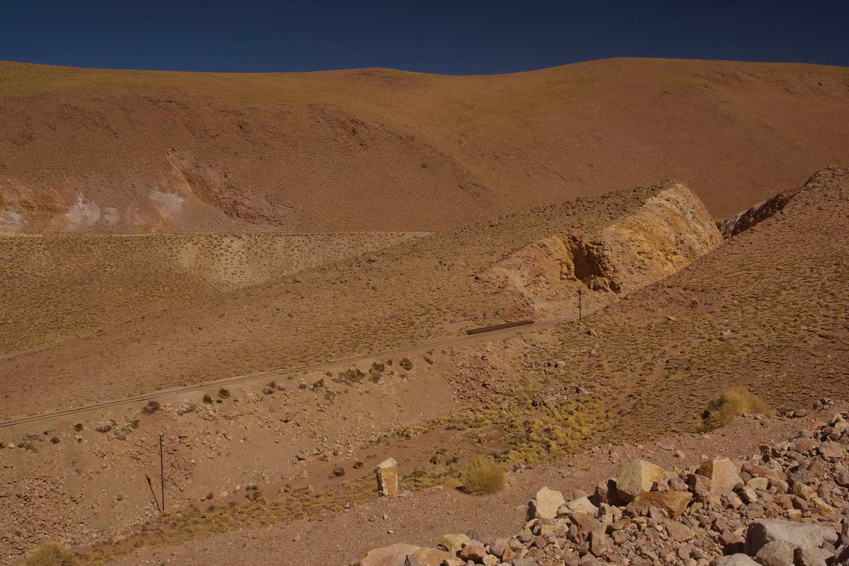 Auf den Salar El Laco folgt die LagunaTuyajto, dessen klares Wasser weiß bis türkis schimmert, darüber erhebt sich ein gewaltiger, bunter Berg. Ich folgte einer Seitenpiste bis hinunter zum Salar de Incahuasi, dessen Oberfläche durch Sedimentablagerungen dunkel erscheint. Ich kam aus dem Staunen nicht mehr heraus, generell würde ich sagen, das der Paso Sico spektakulärer ist, als der Paso de Jama. Die Straßenverhältnisse sind momentan auf beiden Seiten der Grenze sehr gut, frisch präpariert.