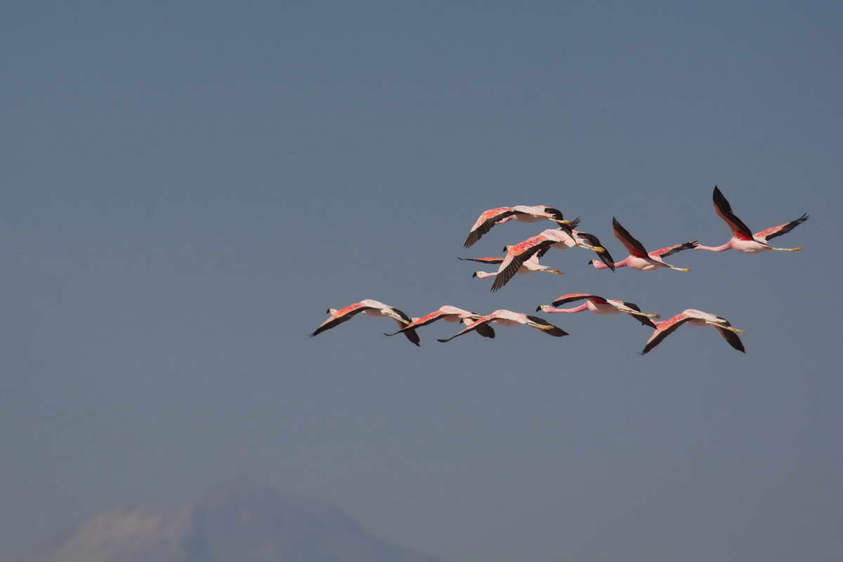 Südlich von San Pedro aus gesehen im Salar de Atacama liegen mehrere kleiner Lagunen, die sich gut zur Beobachtung von Flamingos eignen – zumindest solange man alleine ist. Einmal am Vormittag und einmal am Nachmittag werden die Lagunen von den Bus-Gruppen überrannt, die Flamingos flüchten. Eine dieser Lagunen ist die Laguna Chaxa. Ich verweilte einige Stunden dort und bekam auch ein paar schöne Exemplare vor die Linse.