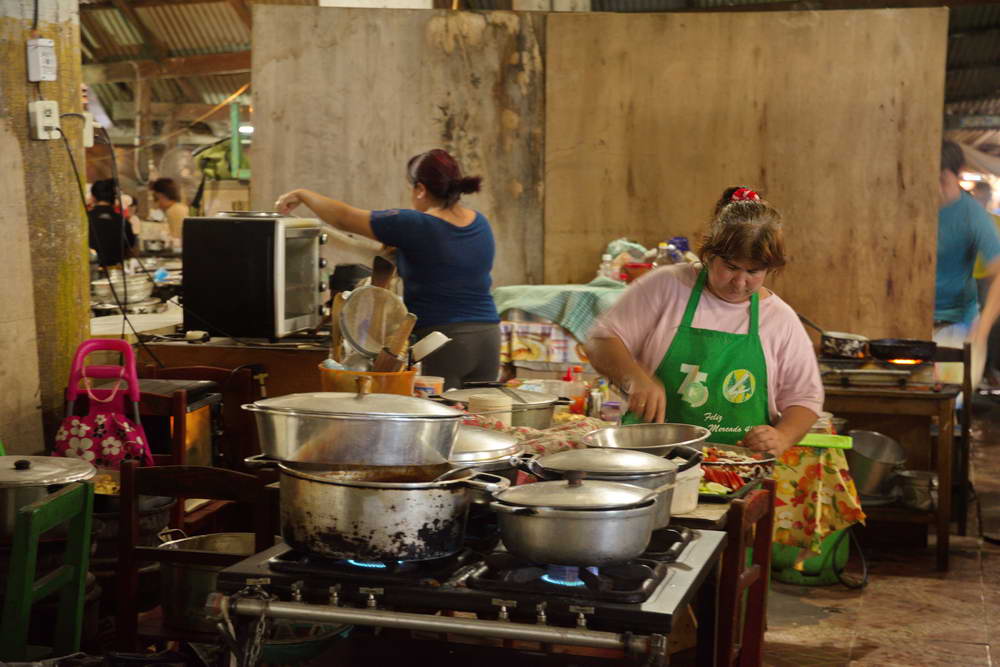 Kulinarisch hat der Markt natürlich auch einiges zu bieten, sehr rustikal, aber lecker. Um mich zu überzeugen ließ mich der Koch bereitwillig in seine Küche und ich durfte ein bisschen in die Töpfe schauen.