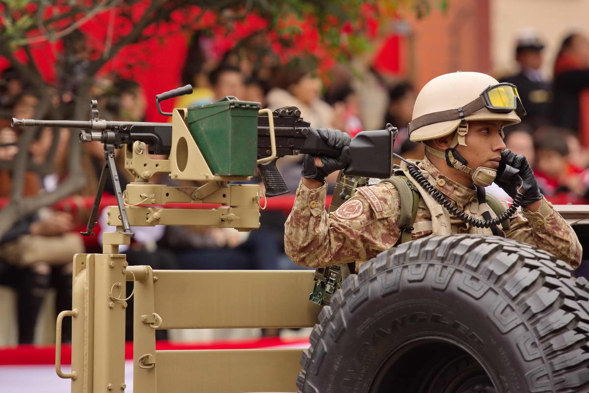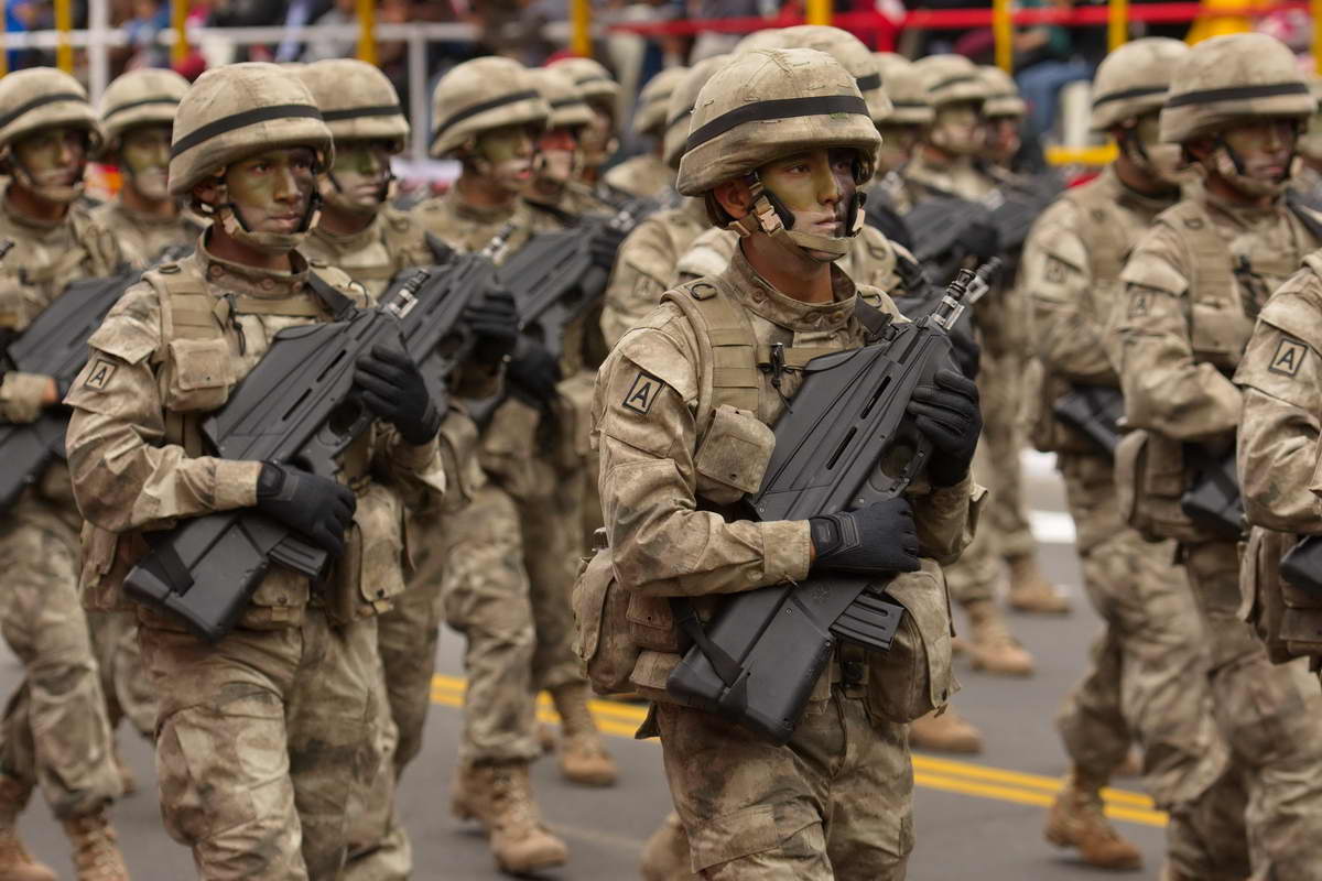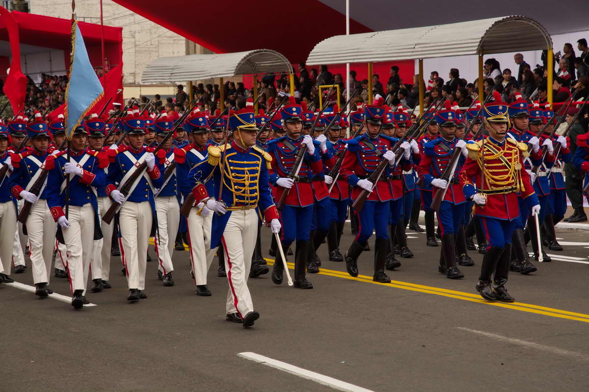 Weit über 120 Abordnungen marschierten mehrere Stunden über die 6 km lange Avenida Brasil, die die einzige Straße in Lima ist, die für so eine Veranstaltung geeignet ist. Über 13000 Soldaten und Beamte der Nationalpolizei sowie Abordnungen der Feuerwehr (Diese ist in Peru ebenfalls militärisch organisiert) marschierten im Gleichschritt über den Asphalt oder pilotierten die Heeresfahrzeuge an den mehr als 150000 Besuchern und der Regierungstribüne vorbei, in deren Mitte der frischgebackene Präsident den Soldaten und der Menge zuwinkte.