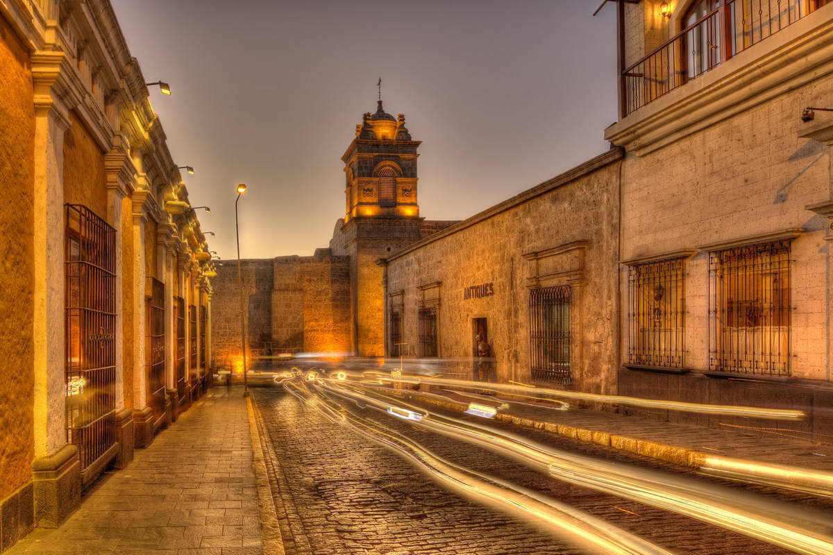 Fotografisch hat Arequipa viele Motive zu bieten, eine gute Testmöglichkeit für ein neues Spielzeug, das ich während meines Ersatzteil-Beschaffungsaufenthalts vor ein paar Wochen von Zuhause mitgebracht hatte, ein Panoramakopf für mein Stativ. Um fehlerfrei zusammengesetzte Panoramas zu erstellen, ist es wichtig, die Kamera um den sogenannten Nodalpunkt zu drehen, das neue Zubehör für mein Stativ ermöglicht dies. Weiteres will ich ein bisschen mehr als bisher mit HDR Fotos experimentieren.