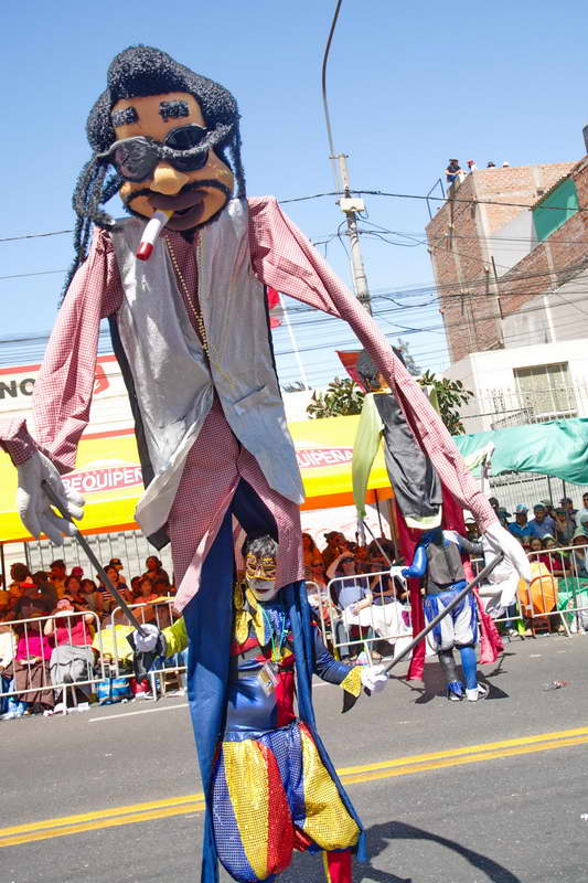 Der Umzug selbst war sehr farbenprächtig, Tanzgruppen, die auch aus den Nachbarländern Chile, Argentinien, Paraguay, Bolivien und Kolumbien stammten, wechselten sich mit Musikgruppen ab, Große Lastwagen wurden von Firmen zu diversen Mottos geschmückt, meist stand eine Schönheitskönigin ganz oben und tanzte zur Musik. Die Menschen jubelten, die Stimmung war feucht-fröhlich, alle waren dabei, von der Motorradgang bis zu Oldtimern, für eine Baufirma tanzte ein männlicher Stripper mit Bauhelm auf dem Truck, die Karawane war nicht endend, bis in den Abend hinein. Auf Nachfrage erfuhr ich, das mehr als 15000 Teilnehmer an dem Umzug teilnahmen.
