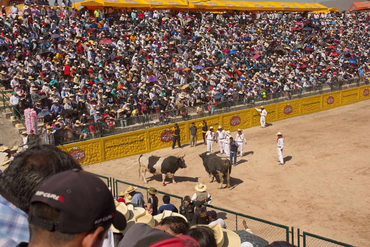 Die nächsten Kämpfe verliefen ähnlich, mal waren die Stiere etwas kleiner oder größer, die Gewichtsklassen schwankten zwischen 400 und 650 Kilogramm. Wie beim Boxen war es auch hier so, dass die Schwergewichtsklasse am langweiligsten war. Na mit dem Gewicht bewegt man sich halt nicht mehr gerne. In einer Situation leckte der eine Bulle dem anderen mit der Zunge übers Gesicht statt zu kämpfen. Der Besitzer war wütend, die Menge lachte und grölte.